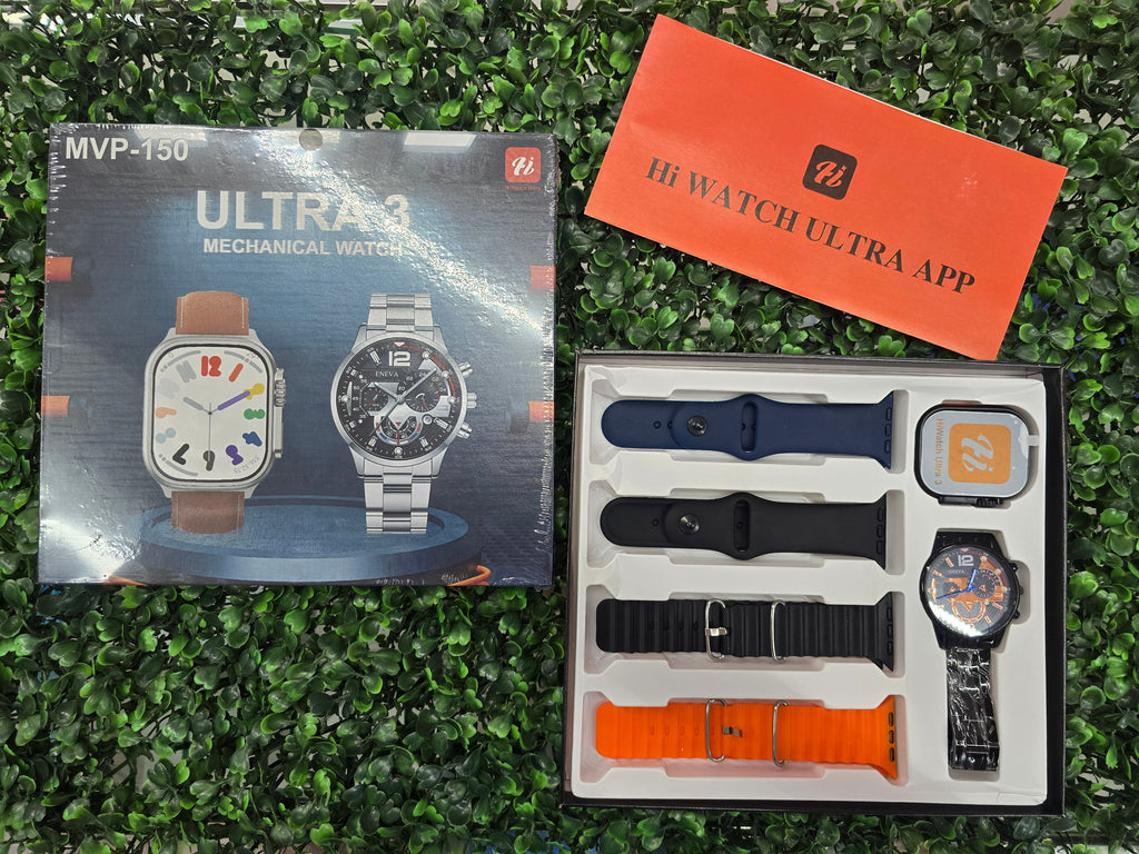 Combo Smart watch Ultra 3 con 4 correas + reloj redondo mecánico